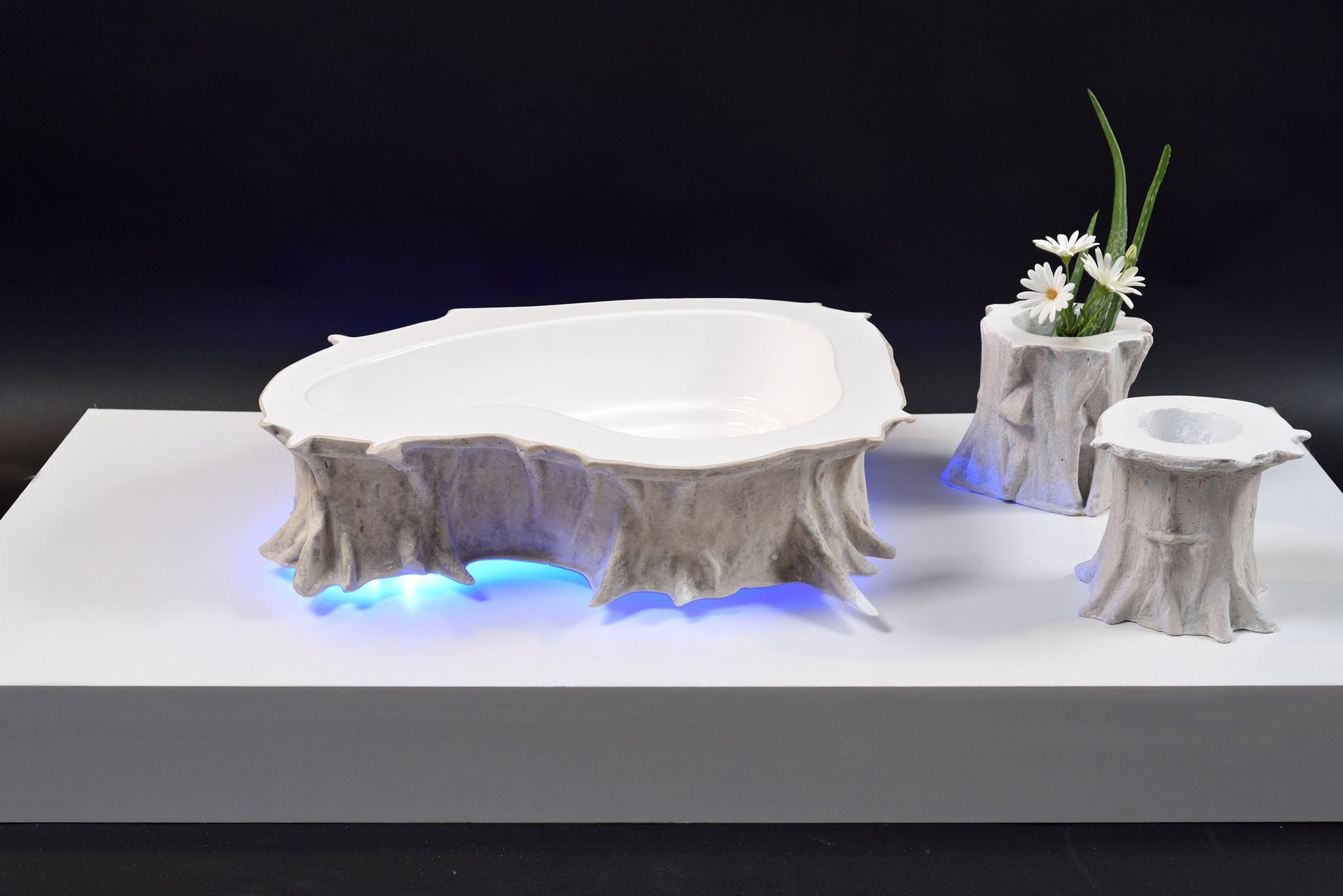 Eco-friendly, sustainable and exceptionally durable, pulverized fly ash is a unique material upcycled from the fine ashy powder produced by coal-fired power plants. The goal was to create a handmade sink collection in honor of the go green movement sweeping the globe as climate change impacts communities worldwide.