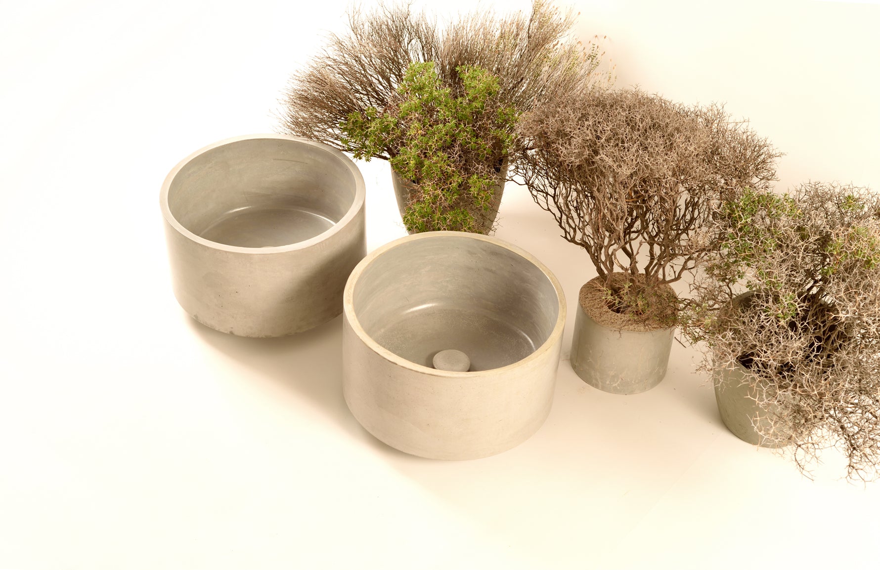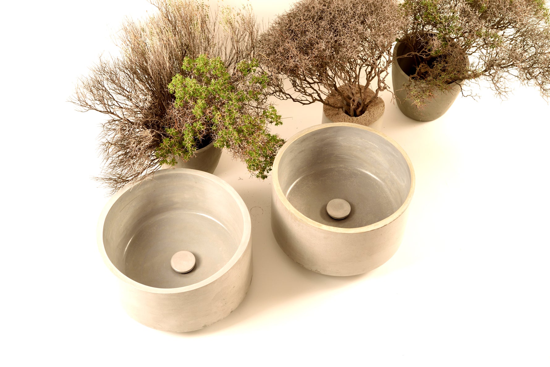 Compact yet striking, the Stilion washbasin embodies simplicity and functionality. With its perfectly rounded cylindrical form 40 cm in diameter and 20 cm in height , this handcrafted basin offers generous depth and everyday practicality. Each sink is entirely handmade, not molded, ensuring a mold-free structure and a truly unique character. Its sculptural presence, combined with the raw texture of concrete, brings a refined, architectural quality to any bathroom.