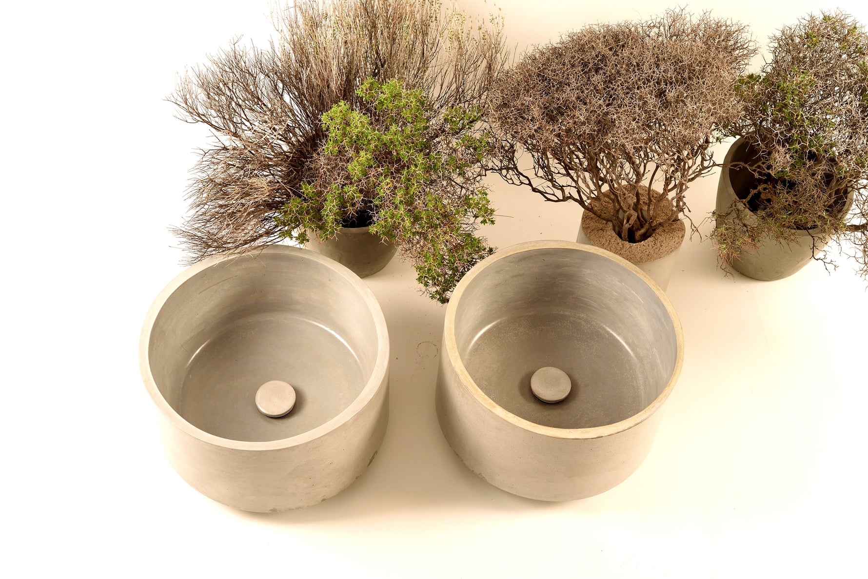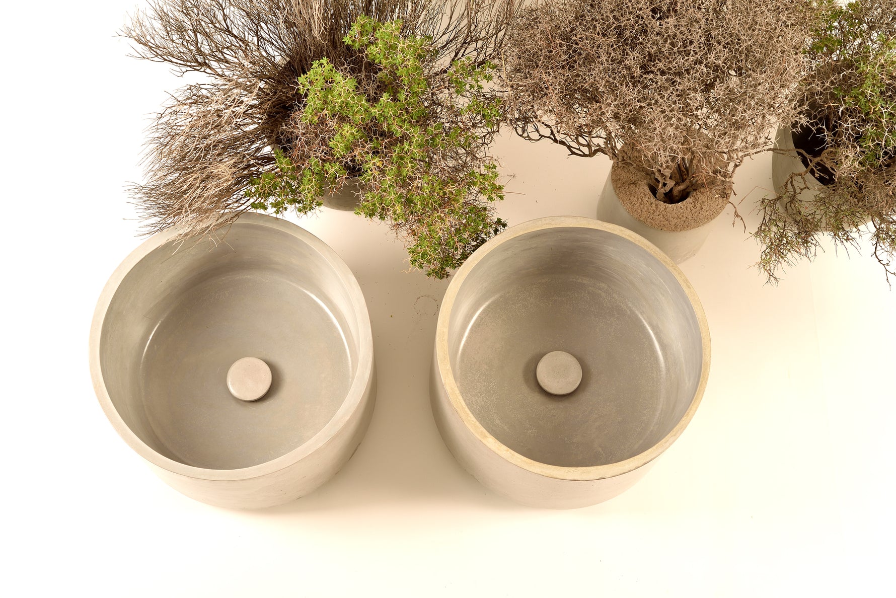 The washbasins features a meticulously crafted concrete surface that is carefully smoothed during the manufacturing process. This results in a refined and flawless finish, providing a luxurious feel to the touch and ensuring a seamless appearance